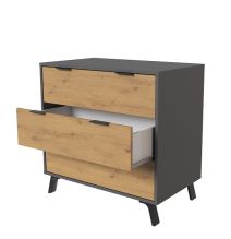 El sinfonier que ofrecemos está fabricado con melamina de alta calidad, lo que garantiza una durabilidad excepcional y una resistencia notable frente al desgaste diario. Su estructura en color roble aporta un toque de elegancia y sofisticación, mientras que los frentes de cajón en color blanco proporcionan un contraste visual atractivo.