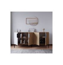 Con unas dimensiones de 180 cm de largo, 40 cm de ancho y 41 cm de altura, el mueble de la Serie Darion ofrece un amplio espacio de almacenamiento para tus necesidades. Incluye estantes y dos armarios para mayor capacidad, lo que te permite organizar tus objetos de manera eficiente y mantener tu espacio ordenado y estilizado.